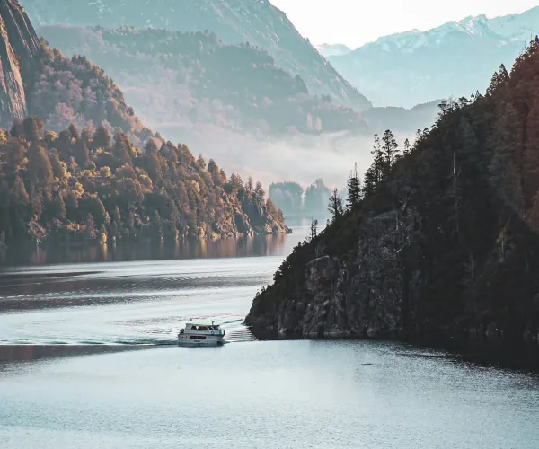 We depart from San Martín de los Andes to travel 40 kilometers of well-maintained gravel roads surrounded by stunning landscapes, heading toward Chile and Lake Pirehueico. There, we will board a catamaran with our motorcycles for an hour-long journey across the lake. Afterward, we will continue along a visually breathtaking route through the lake district, enjoying some of the most beautiful scenery, until we reach our first destination: Valdivia.