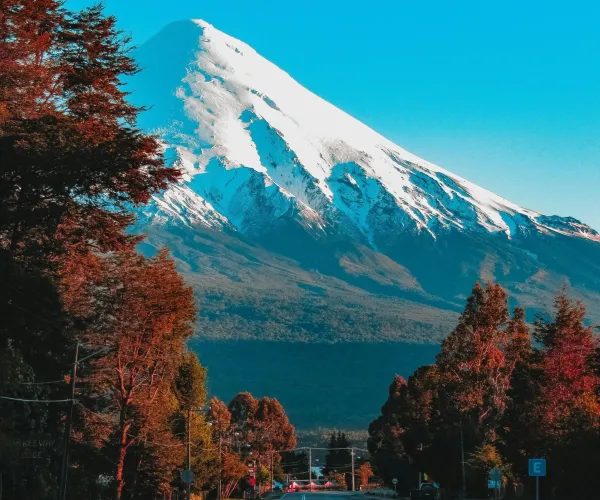 We wake up to a stunning view and begin our ride along the shores of Lake Llanquihue. We will take a detour to visit the famous Petrohué Waterfalls before returning to the main route to ascend a volcano—yes, you read that right, a volcano! We will visit Osorno Volcano, which gives its name to the nearby city.